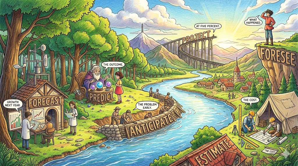 | 근대 영어 | forecast | 예측하다, 예상하다 | 분석 기반의 미래 예측 |