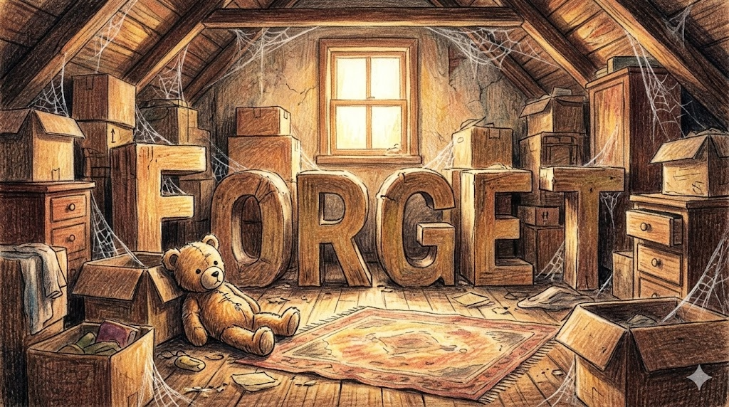 'forget'은 고대 영어 forgietan(잊다, 놓치다)에서 유래했으며, for-(완전히, 반대로)와 gietan(얻다, 잡다)의 결합입니다. 어원의 핵심 이미지는 "한 번 잡고 있던 것을 완전히 놓아버리는 것" 으로, 단순히 기억이 흐릿해지는 것이 아닌 의식에서 완전히 벗어나버리는 능동적이고 완전한 분리가 이 단어의 본질입니다.