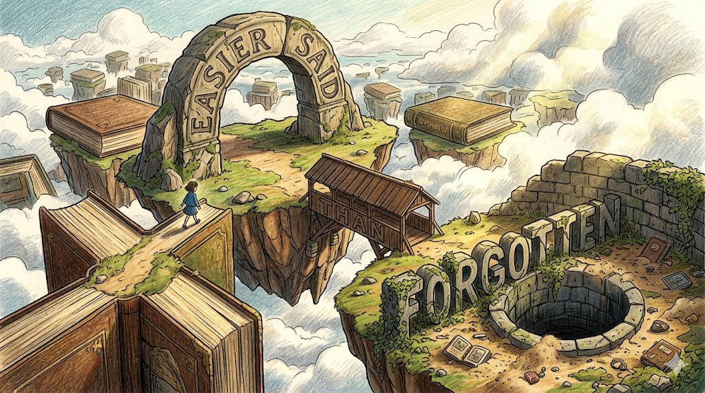 이 세 표현은 모두 forget의 사회적·심리적·감정적 차원을 보여줍니다. easier said than forgotten은 망각의 어려움을, the forgotten man은 사회적 망각을, forget in a hurry는 인상의 지속성을 각각 표현합니다.