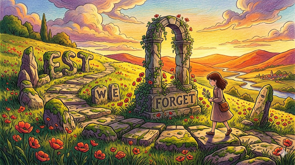 - Lest we forget — history has shown repeatedly that the same mistakes recur when memory fades. (잊지 않도록 — 역사는 기억이 희미해질 때 같은 실수가 반복된다는 것을 반복적으로 보여주었다.)