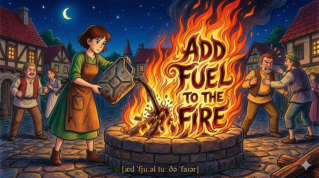 4. add fuel to the fire [æd ˈfjuːəl tuː ðə ˈfaɪər]