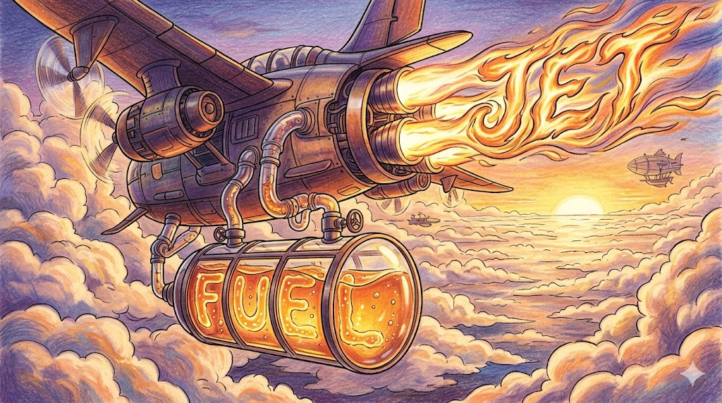 - jet fuel → 항공 연료. 비행기 엔진에 사용되는 고성능 연료. 비유적으로 무언가를 폭발적으로 가속시키는 것에 씀. "The investment was jet fuel for the startup's growth." (그 투자는 스타트업 성장의 폭발적인 동력이 됐어.)