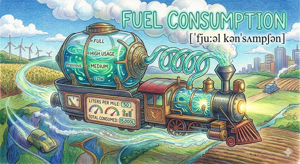 - fuel consumption → 연료 소비량. 일정 기간 또는 거리 동안 사용된 연료의 양. "The new engine has significantly reduced fuel consumption." (새 엔진이 연료 소비량을 크게 줄였어.)