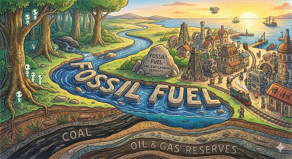 - fossil fuel: 수백만 년에 걸쳐 형성된 석탄·석유·천연가스 같은 연료.