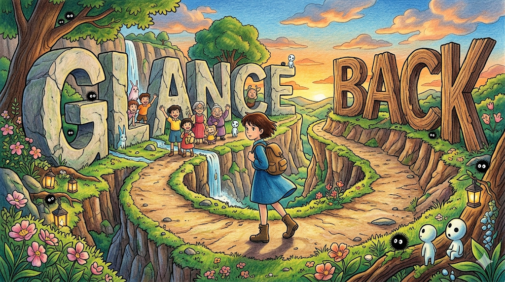 | glance back | 뒤를 돌아보다 | 지나온 방향을 잠깐 보다 | 일상·문학·심리 |