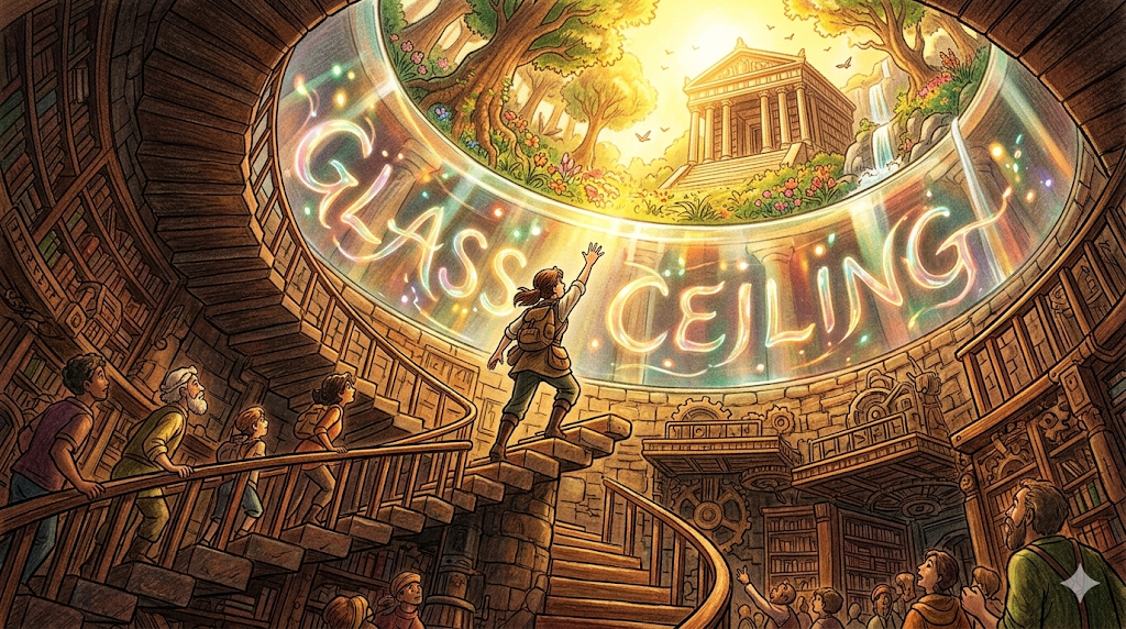 (사회/경제/수능) "유리 천장"을 뜻합니다. 여성이나 소수 집단이 높은 직위에 오르는 것을 막는 보이지 않는 사회적 장벽을 비유적으로 표현합니다. 수능 독해 사회·경제·젠더 지문의 핵심 표현입니다.