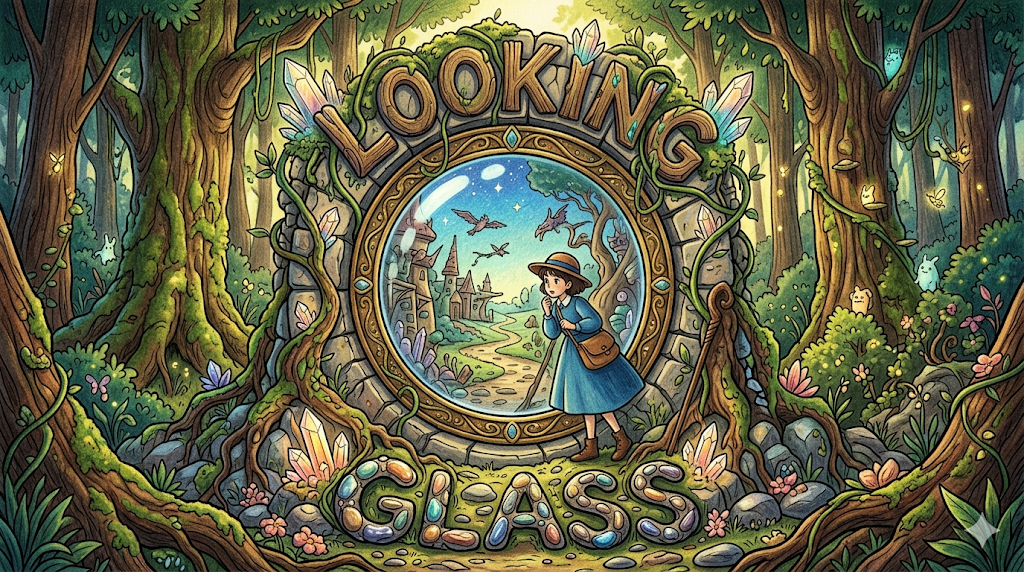 (문학/문화/수능) "거울"을 뜻합니다. mirror보다 더 격식체·문학적 표현으로, 루이스 캐럴의 작품에서 유명해진 표현입니다. 수능 독해 문학·문화 지문에서 자주 등장합니다.
