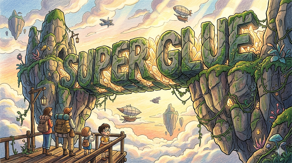 super glue는 매우 빠르고 강하게 붙는 강력 접착제를 나타냅니다. 비유적으로 매우 강하고 깊은 연결을 나타낼 때도 쓰입니다.