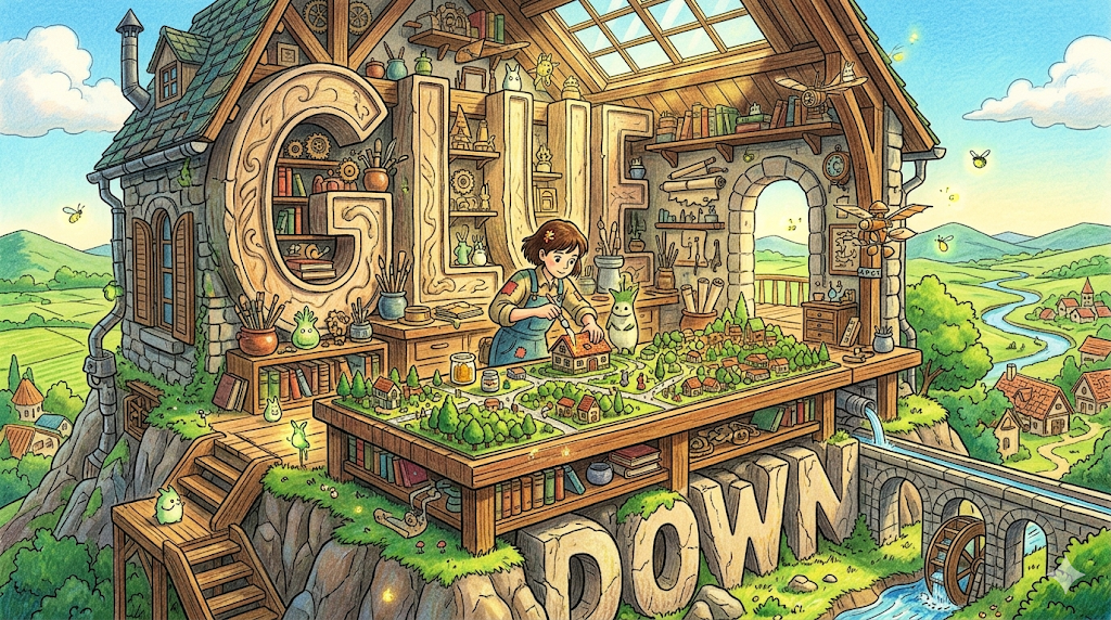 🌟 초등학생 버전 glue는 "풀, 접착제"예요! 종이를 붙일 때 사용하는 풀이 바로 glue예요. TV를 너무 열심히 보면 "glued to the TV(TV에서 눈을 못 떼는 것)"라고 해요. 친구들을 하나로 묶어 주는 것을 "the glue that holds us together(우리를 하나로 묶는 접착제)"라고 하고, 모든 것이 엉망이 되면 "come unglued(무너지다)"라고 한답니다!