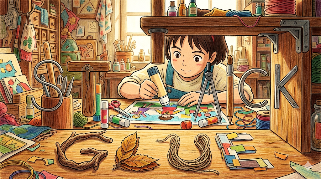 glue stick은 막대 형태로 만들어진 고체 접착제를 가리킵니다. 학교·사무실·공예 맥락에서 자주 등장합니다.