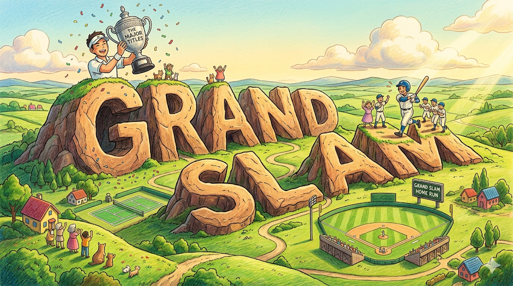 두 가지 의미를 가집니다. 테니스에서는 4대 메이저 대회를 모두 이기는 것, 야구에서는 만루 홈런을 뜻합니다. 모두 "가장 완벽한 최고의 결과"라는 이미지를 공유합니다.