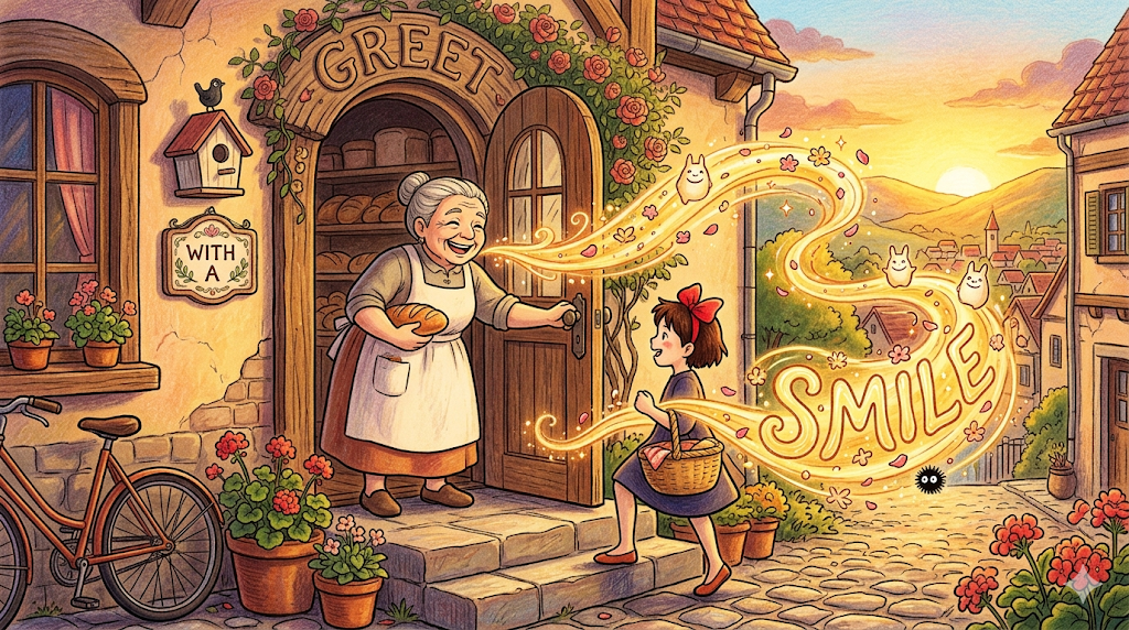 greet with a smile