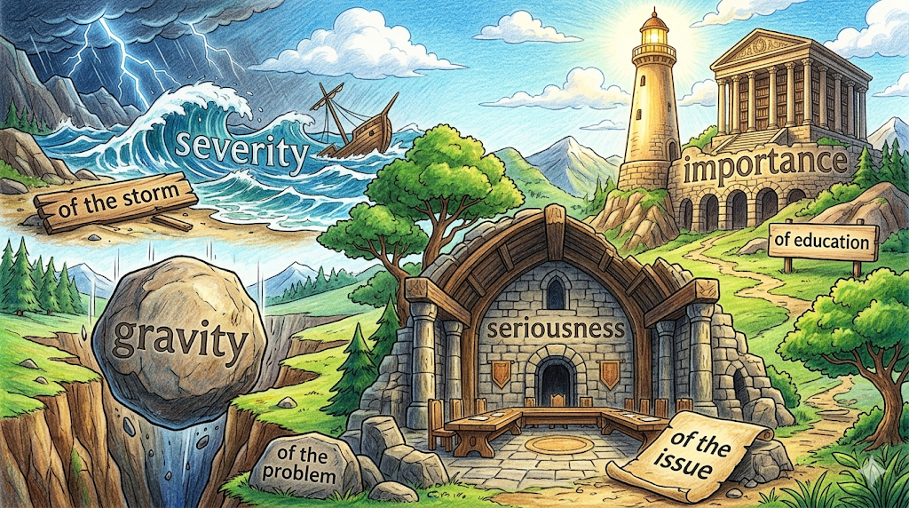 ✨ 최종 한 줄 요약 gravity는 물리적 중력에서 출발해, 상황의 심각성과 사람의 진중한 무게감까지 아우르는 단어다.