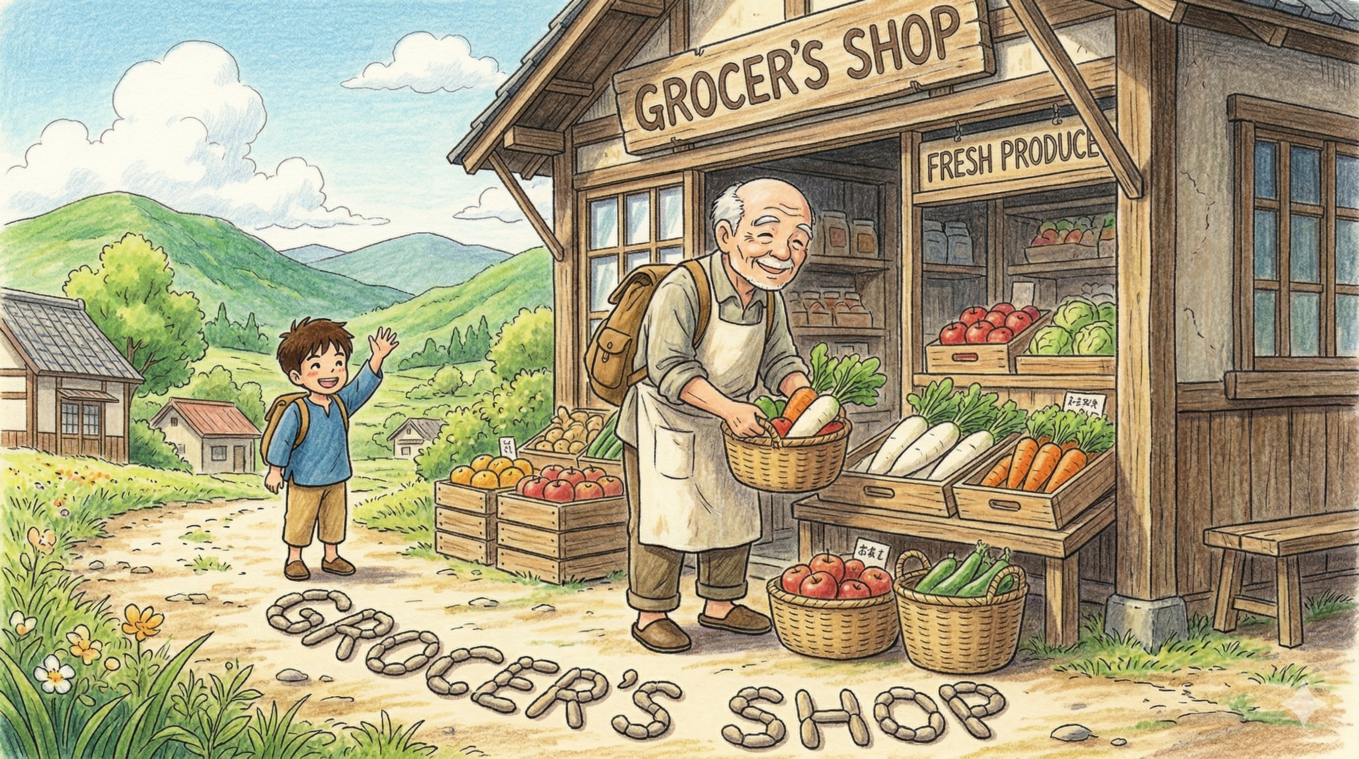 🌟 초등학생 버전 grocer는 "식료품 상인"이에요! 동네에서 음식과 생활에 필요한 것들을 파는 사람이에요! 우리가 장을 보러 가는 곳도 grocery store! 장볼 물건 목록도 grocer's list! 집까지 배달해주는 것도 grocery delivery! 모두 "생활에 필요한 기본적인 것들을 공급하는 공동체의 역할자"라는 하나의 이미지에서 나온 단어예요! 🛒