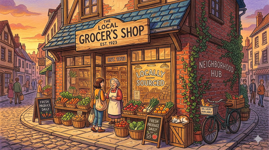 | grocer's shop | 동네 식료품점 | 공동체 중심의 작은 식료품 가게 |