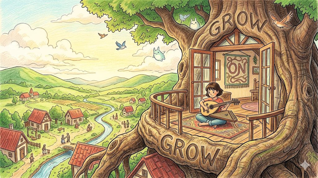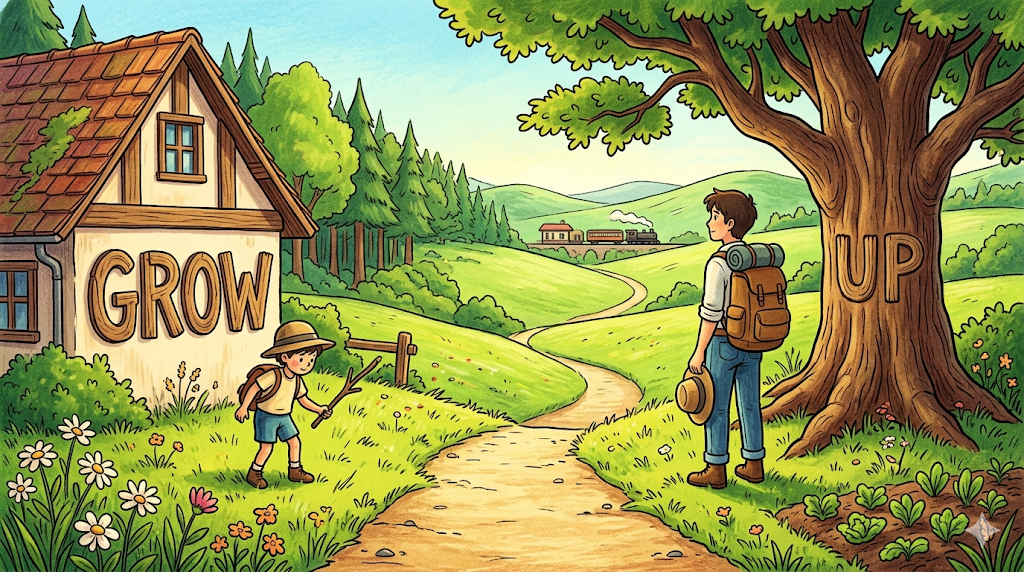 "grow는 그냥 '커진다'가 아니야. 나무가 뿌리에서 천천히 위로 자라듯, 시간과 경험 속에서 변해가는 모든 과정이 grow야. 재미있는 건, 뒤에 어떤 단어가 오느냐에 따라 방향이 완전히 달라진다는 거야. grow up은 어른이 되는 것, grow out of는 예전 것을 졸업하는 것, grow into는 새로운 역할에 맞게 변해가는 것, grow apart는 관계가 자연스럽게 멀어지는 것이야. 그리고 'This grows on you'처럼 처음엔 별로였는데 점점 좋아지는 것도 grow on이라고 해. 성장은 항상 한 방향이 아니야 — grow는 그 모든 방향의 변화를 담아내."