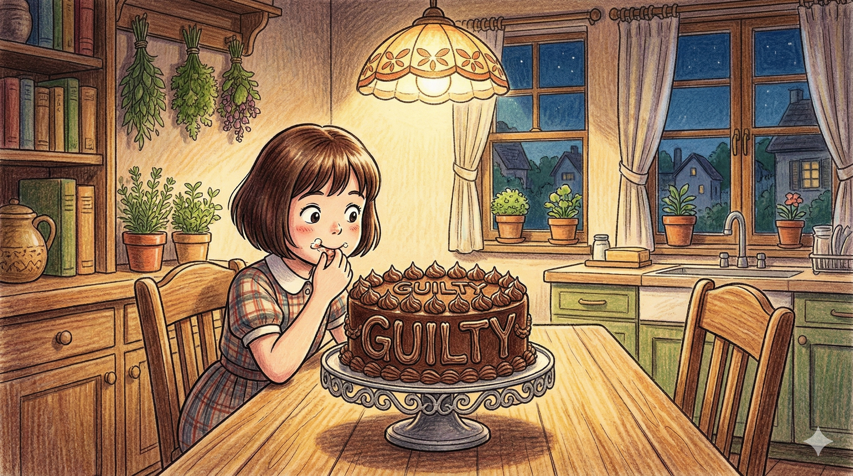 "guilty는 '유죄의, 죄책감을 느끼는'이야. 법정에서 유죄 판결이 나면 guilty verdict, 본인이 잘못을 인정하면 plead guilty야. not guilty는 '무죄'고. feel guilty는 '죄책감을 느끼다' — 친구에게 미안한 짓을 했을 때 I feel guilty about it이라고 해. guilty conscience는 '양심의 가책' — 나쁜 짓을 하고 마음이 불편한 상태야. guilty look은 뭔가 들킨 것 같은 표정이야 — 쿠키를 몰래 먹다 걸렸을 때 짓는 그 표정! guilty pleasure는 재미있는 표현인데, 남들이 알면 창피하지만 사실 즐기는 것이야 — 유치한 노래나 드라마 같은 것들이야!"