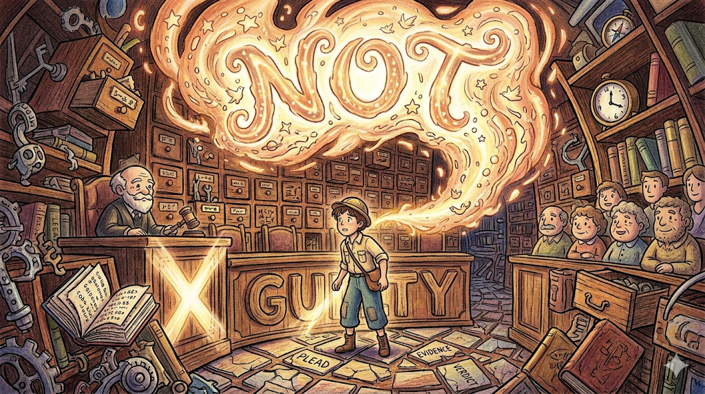 | not guilty | 법적 무죄 | 충분한 증거 없이 죄가 없다고 판결됨 |