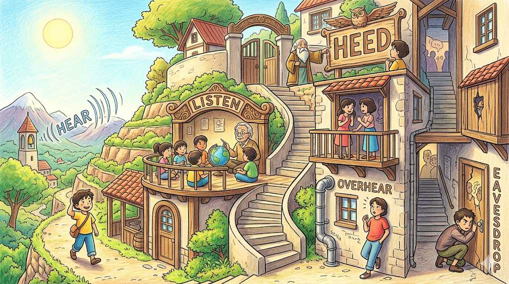 1️⃣ 기본 뉘앙스 — hear vs. listen의 차이