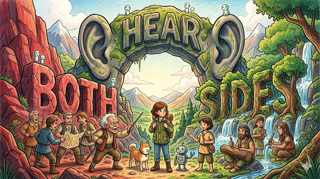 - hear both sides → 양쪽 의견을 모두 듣다 (공정하게 판단하기 위한 자세)