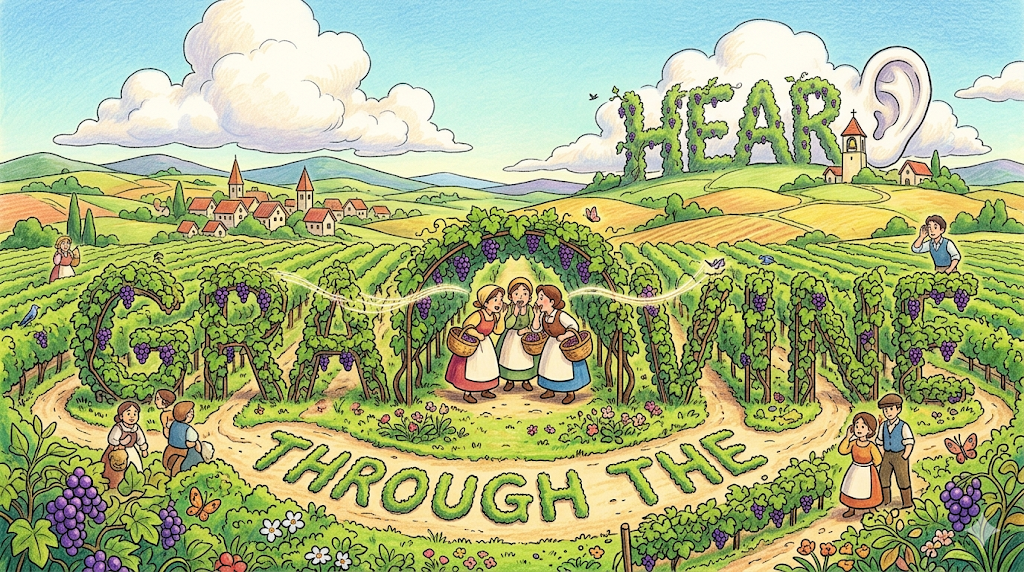 - 💡 grapevine은 포도 덩굴처럼 여러 사람을 거쳐 전해지는 소문의 이미지