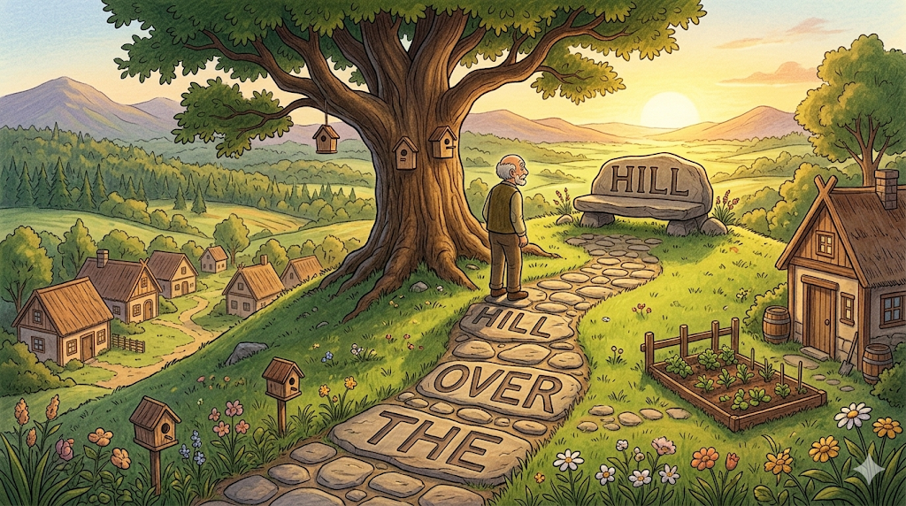 hill은 단순히 "언덕"이 아니라, 아래와 위가 존재하며 오르고 내려야 하는 도전과 변화의 공간 자체를 담은 단어다 — hill이 있는 곳엔 언제나 '단순한 지형이 아닌, 올라가는 노력과 내려오는 변화, 그리고 정상에서 바라보는 새로운 시각' 의 선언이 있다.