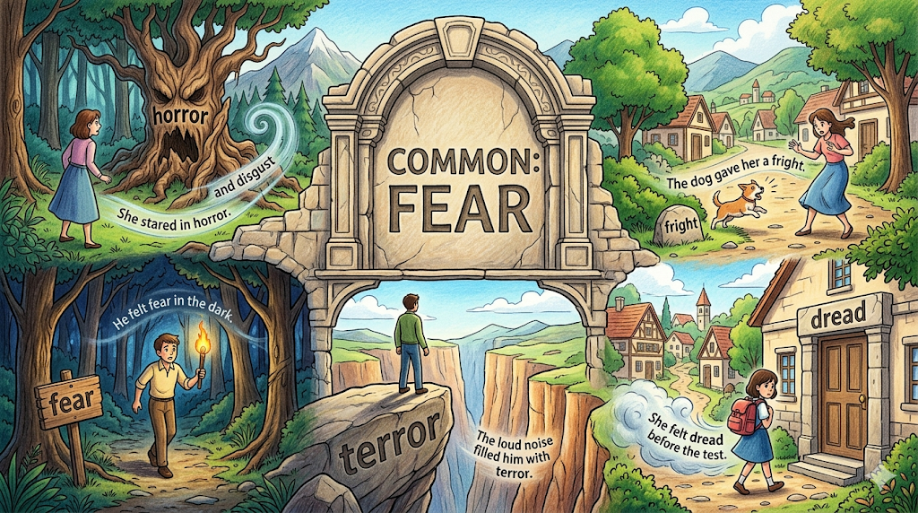 horror는 "단순한 두려움이 아닌, 몸과 마음을 완전히 압도하는 강렬한 공포"로, 순간의 충격부터 오래된 혐오감까지 폭넓게 아우르는 단어다.