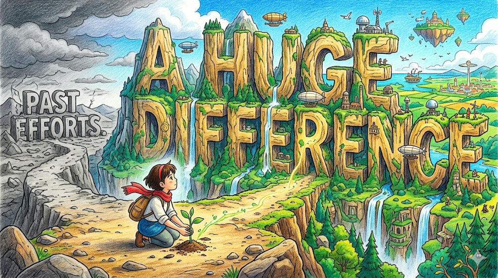 (일상/사회/수능) "엄청난 차이를 만들다"를 뜻합니다. 어떤 행동이나 변화가 상황에 매우 큰 영향을 준다는 것을 강조합니다.