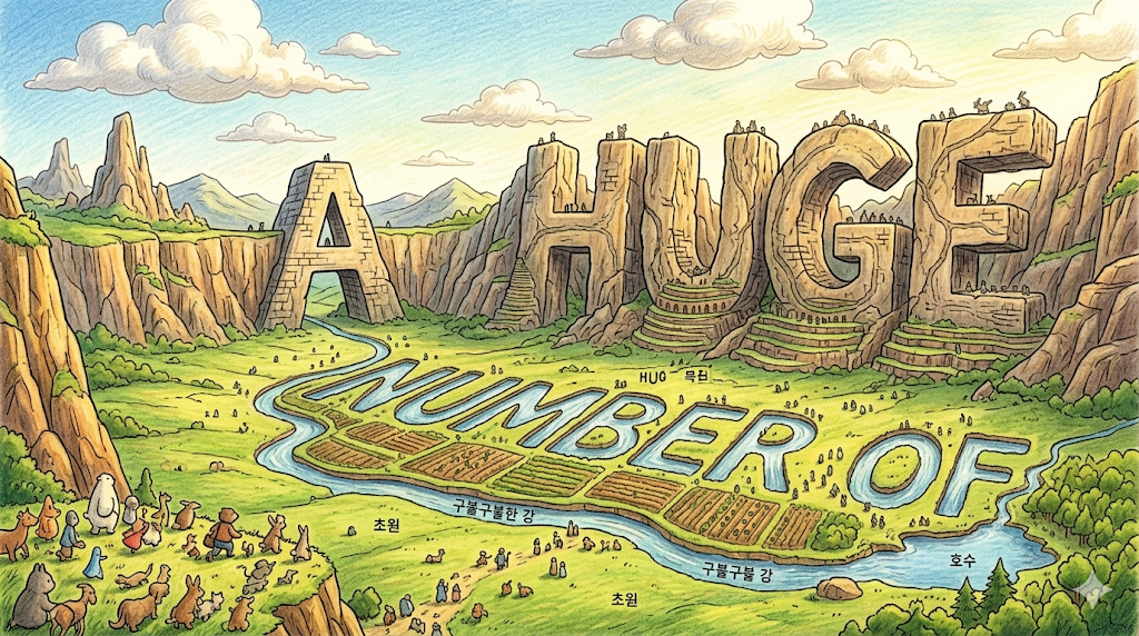 - a huge number of → 엄청난 수의. 셀 수 있는 대상이 매우 많을 때. "A huge number of people attended the rally." (엄청난 수의 사람들이 집회에 참가했어.)