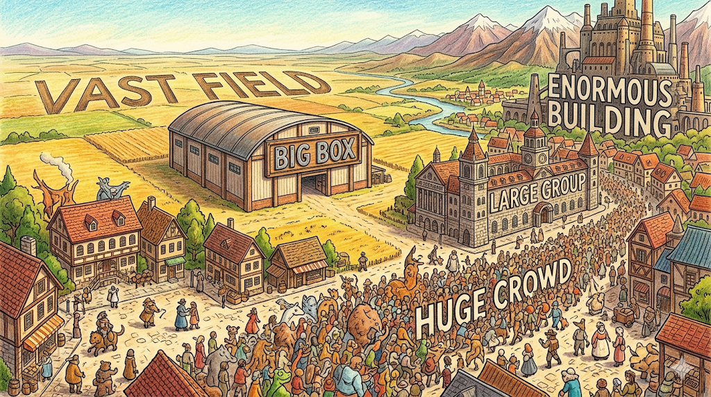 한 줄 요약: "단순히 '크다'를 넘어 — 압도적인 규모와 영향력으로 모든 것을 덮어버리는 단어."