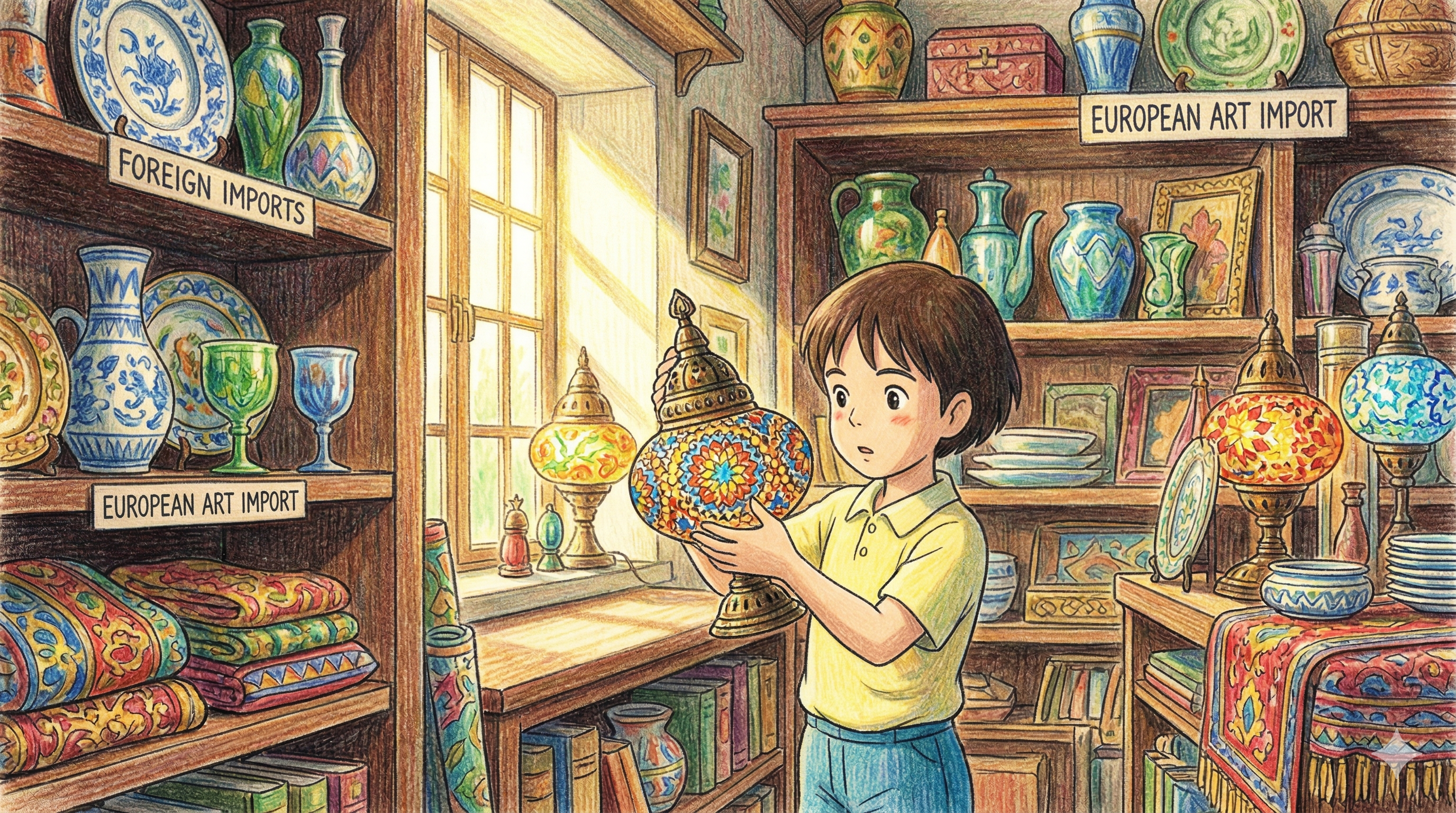 다른 나라에서 들여온 물건들을 나타냅니다.