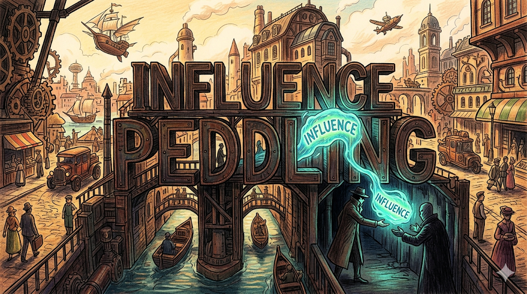(사회/법률/수능) "영향력 거래, 청탁"을 뜻합니다. 자신이 가진 권력이나 연줄을 이용해 부당한 이익을 얻거나 특정 결정을 바꾸려는 행위를 나타냅니다.