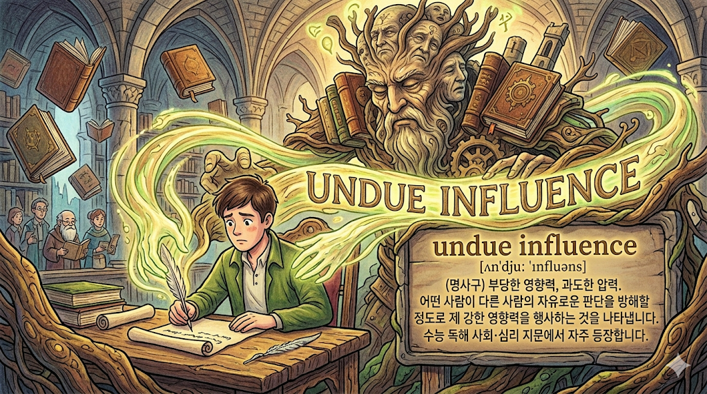 어떤 사람이 다른 사람의 자유로운 판단을 방해할 정도로 지나치게 강한 영향력을 행사하는 것을 나타냅니다. 수능 독해 사회·심리 지문에서 자주 등장합니다.