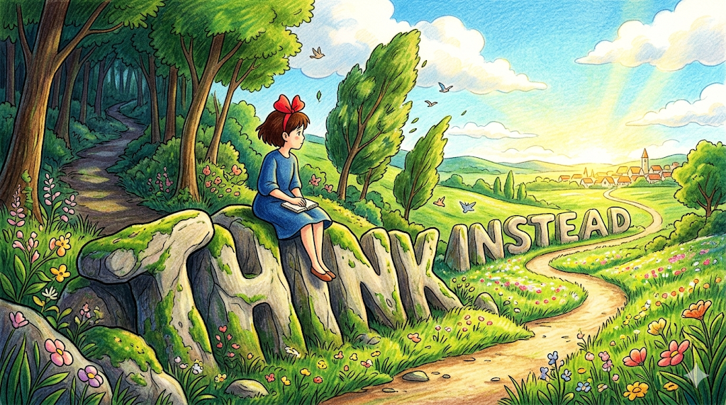 - think instead → 다르게 생각해보다 (기존 사고방식을 버리고 새 관점으로)