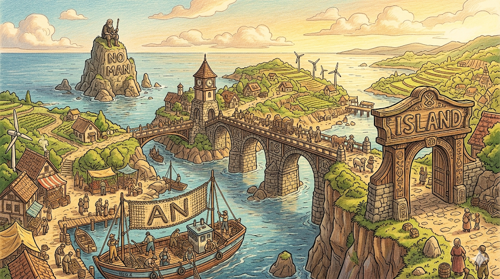 이 세 표현은 모두 island가 고립·사고·연결과 연결되는 방식을 보여줍니다. desert island는 완전히 혼자인 물리적 고립을, island mentality는 스스로 선택한 정신적 고립을, no man is an island는 고립이 불가능하고 인간은 서로 연결되어 있다는 것을 각각 나타냅니다.