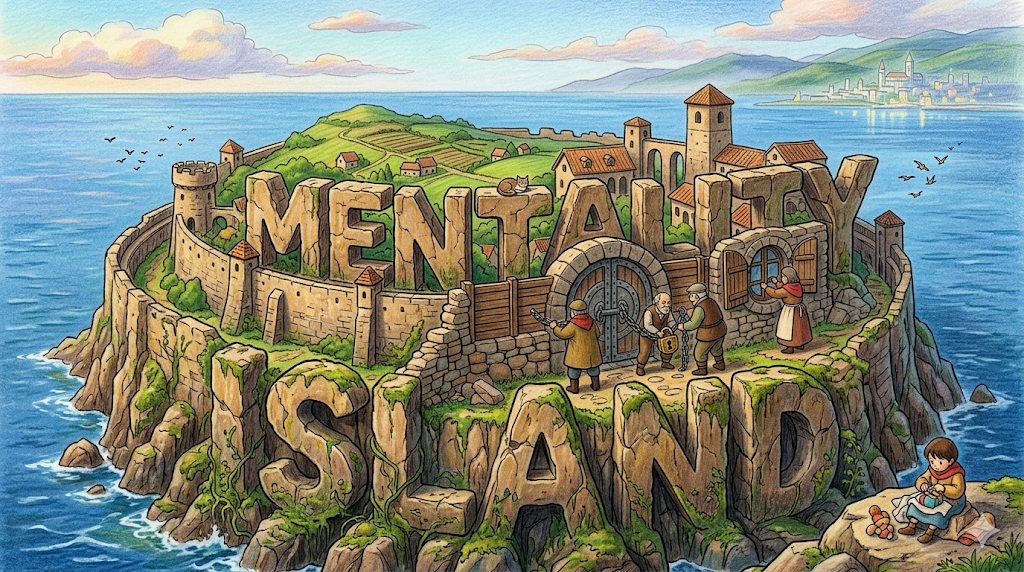 - island mentality → 섬나라 근성, 폐쇄적 사고방식 (외부 세계에 닫혀 있는 태도)
