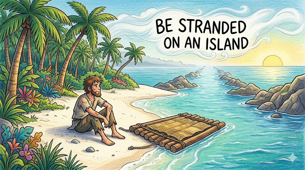 7. be stranded on an island [biː ˈstrænd ɒn ən ˈaɪlənd]