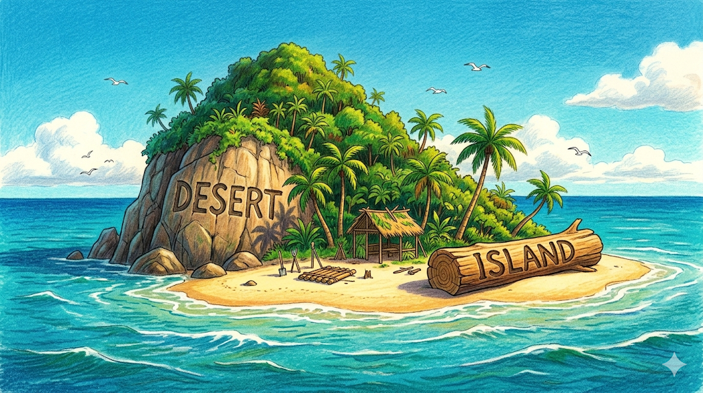 3. desert island [ˈdezərt ˈaɪlənd]