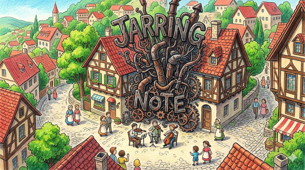 The one jarring note in the otherwise beautiful song was a single line that felt completely out of place. (그 아름다운 노래에서 유일한 불협화음은 완전히 어울리지 않게 느껴지는 한 소절이었다.)
