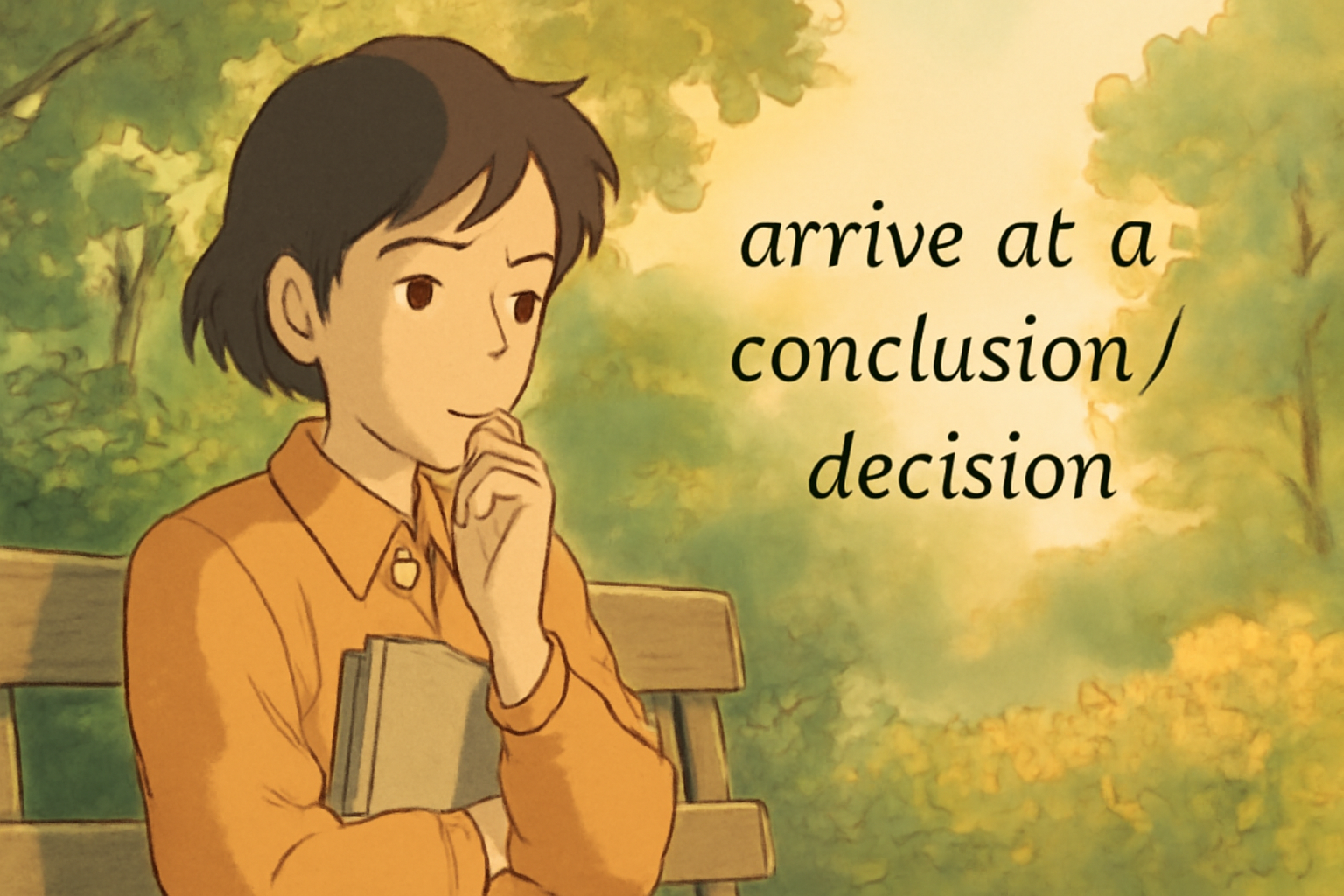 - *'arrive at a conclusion/decision'**은 여러 과정을 거쳐 최종적인 판단을 내리는 과정을 비유적으로 묘사하는 표현입니다.