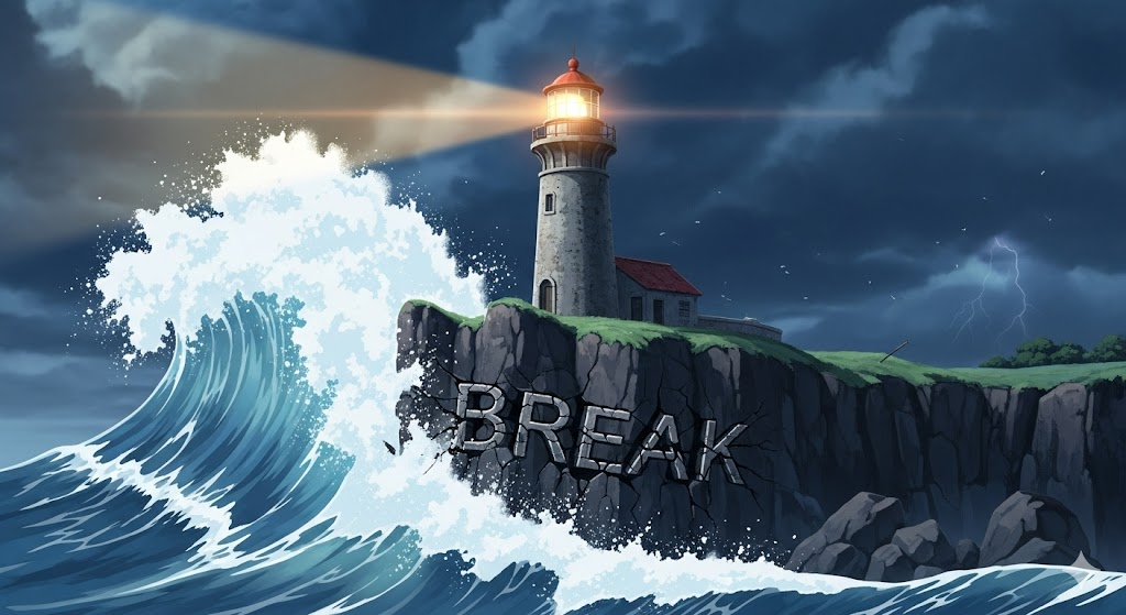 - *'break'**는 **'물리적/추상적인 어떤 연속성, 완전성, 또는 규칙이 파괴되거나 중단되는 것'**이라는 핵심 뉘앙스를 가집니다. 이는 갑작스럽거나 예상치 못한 파괴, 의도적인 위반, 기능의 상실, 관계의 단절, 또는 일시적인 중단을 포함하는 매우 광범위한 의미를 지닙니다. 긍정적일 수도(휴식, 돌파구) 있고 부정적일 수도(파괴, 고장) 있습니다.