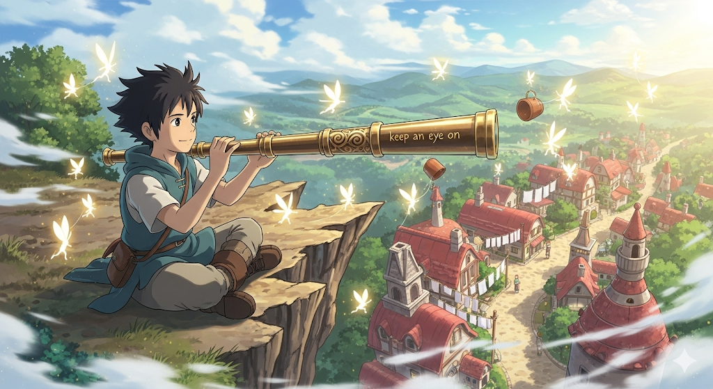 - 의미: ~를 주의 깊게 보다, 감시하다