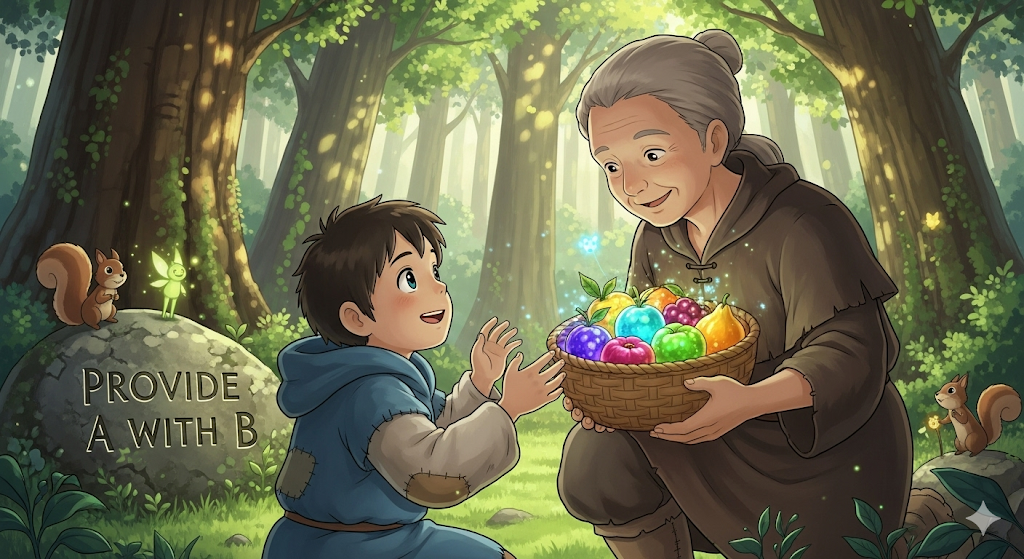 - 해석: B를 A에게 제공하다