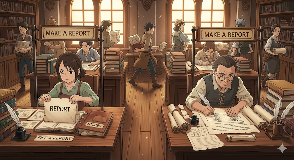 이 표현들은 보고 행위의 구체적인 대상, 종류, 그리고 작성 과정에 대한 상세한 정보를 제공하여 보다 정확한 의미를 전달합니다.