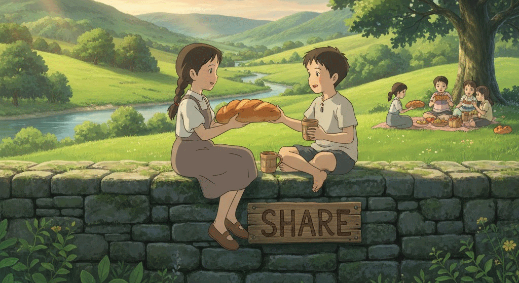 '자신'이 '소유'(own)하거나 '경험'(experience)하는 **'무언가'**를 '다른' 사람'에게 '나누어' '주어', '함께' '사용'하거나 '경험'하도록 '허락'(allow)하는 행위를 의미합니다. 단순히 **'분배'**하는 것을 넘어, '정보'(information), '감정'(emotion), 또는 '책임'(responsibility)을 '공유'하는 협력적 행위에 초점이 맞춰집니다. 명사로는 '지분'(market share)이나 **'몫'**을 뜻합니다.