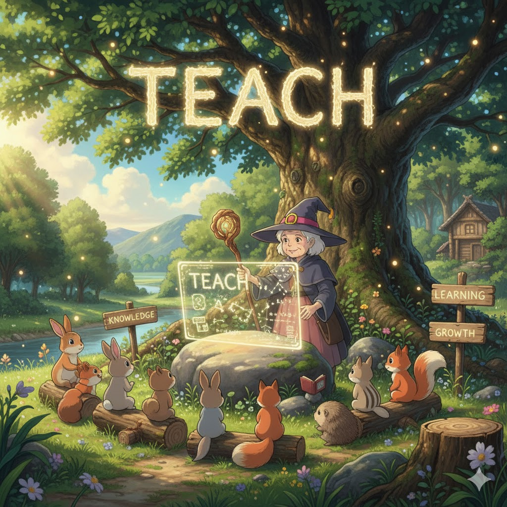 - *'teach'**는 동사일 때 **'다른 사람의 지식이나 기술을 향상시키기 위해 노력하거나, 어떤 경험을 통해 중요한 깨달음을 얻게 하는 행위'**라는 핵심 뉘앙스를 가집니다. 이는 **'정규 교육'**뿐만 아니라, **'개인적인 기술 전수, 도덕적 가르침, 그리고 삶의 교훈'**까지 포함하여 **'교육, 안내, 그리고 깨달음'**의 의미를 포괄합니다.