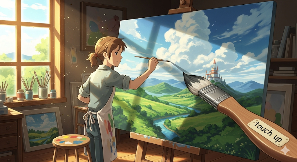 - 해석: (그림, 사진 등을) 손보다, 다듬다