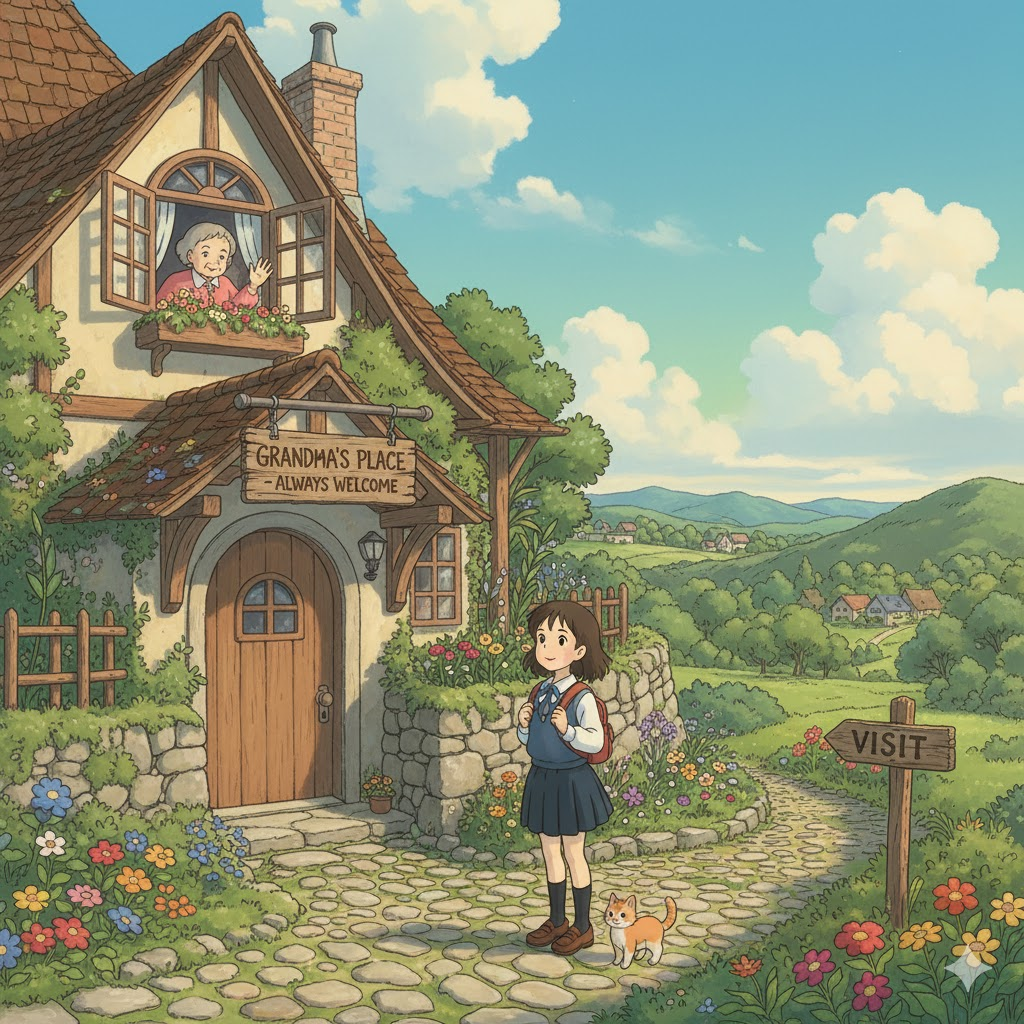 - She enjoys visiting with her grandmother and listening to old stories. (그녀는 할머니와 이야기를 나누고 옛날이야기를 듣는 것을 즐긴다.)