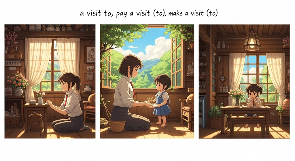 라틴어 visitare ("자주 가다, 보러 가다, 방문하다")에서 유래 → 원래 **'어떤 곳을 자주 찾아가거나 살펴보기 위해 가는 것'**을 의미했음 → 이 의미가 현대 영어에서 '특정 목적이나 친목을 위해 사람이나 장소에 잠시 가는' (방문하다) 동사로 발전함. 나아가 '질병이나 불운 같은 것이 갑자기 닥치는' (찾아오다, 닥치다) 비유적인 의미를 가지게 되었어요. 명사로는 이러한 '방문하는 행위' (방문)를 나타내게 되었어요. 즉, **'물리적으로 어떤 곳이나 사람에게 가는 행위 또는 어떤 사건이 발생하는 것'**을 나타내는 핵심 단어예요.