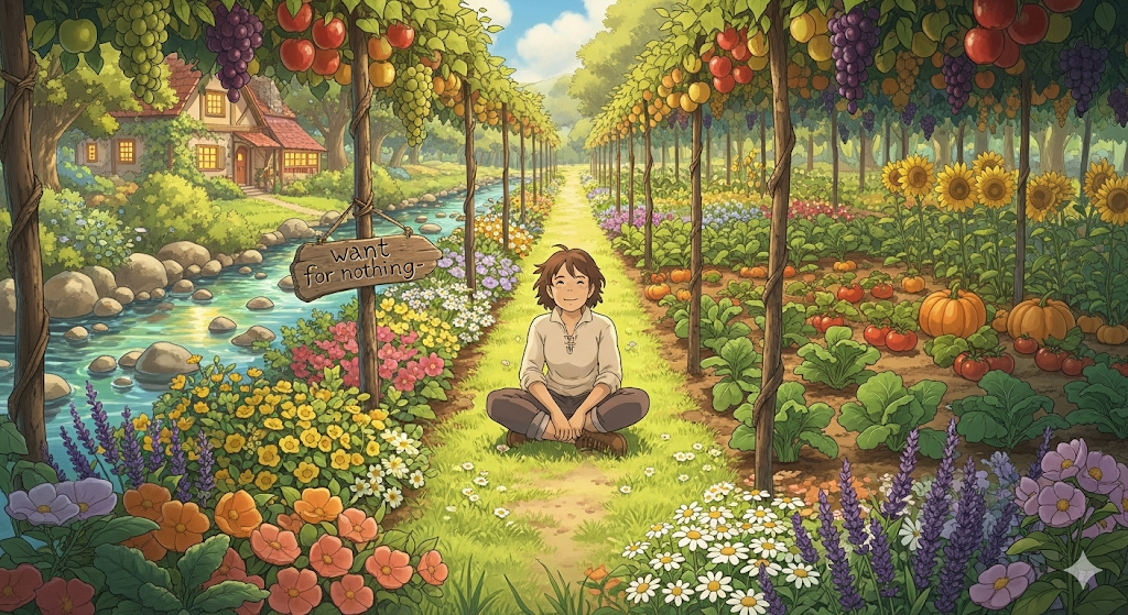 'want for nothing'은 필요한 것이나 원하는 것이 모두 충족되어 부족함이 없는 상태를 의미합니다. 이는 단순히 재정적인 풍요를 넘어, 삶의 모든 면에서 만족과 평화를 느끼는 완전한 상태를 나타냅니다. 이는 동화 속 왕자나 공주처럼, 모든 것이 갖추어진 안전하고 행복한 삶을 누리는 뉘앙스를 담고 있습니다.